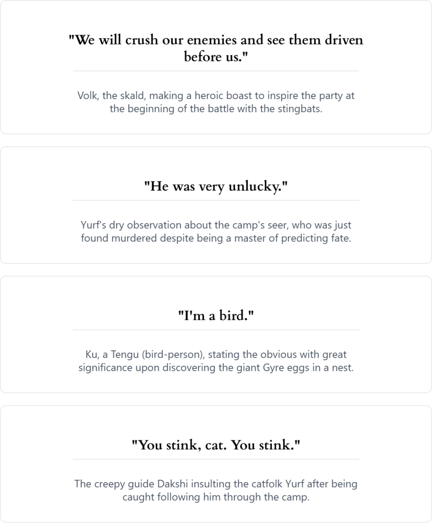 The ancient monastery held many secrets. Behind a desecrated statue, the party found a hidden passage leading to a defiled meditation chamber where they were ambushed by vicious stingbats. Deeper still, they entered an alchemical laboratory and battled a green slime that psychically shared a vision of a hidden treasure before it was cleverly dispatched by Yurf. Following the vision’s clues and the path of another murdered monk, they explored the monastery’s courtyard. There, they fought off a giant desert vulture, stole its eggs, and unearthed a powerful magic gauntlet named Tempest. As Ithakhan donned the artifact, a voice whispered from within, promising power when the time for battle arrived.